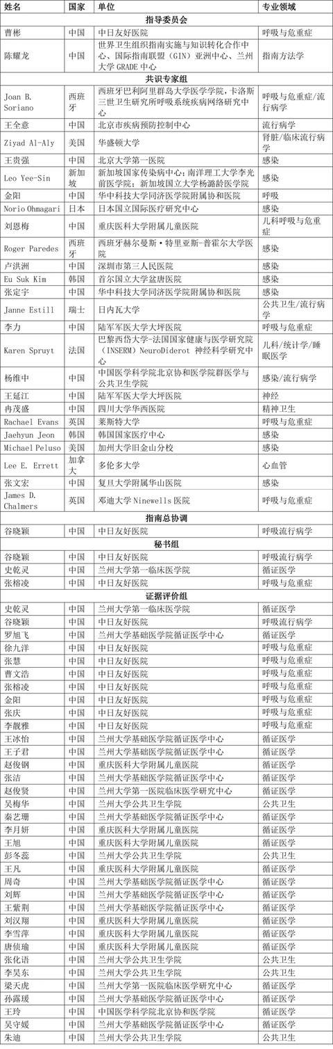 《指南》自2023年12月启动注册,于2024年2月完成长新冠实践指南多学科工作组(Multidisciplinary Working Group on Long COVID Practice Guidelines,MWG-LCPG)的组建。中日友好医院曹彬教授担任该该工作组主席,兰州大学陈耀龙教授担任首席方法学专家。共识专家组由来自十个国家十个领域的24名专家组成,证据评价组由34名成员组成(表1)。